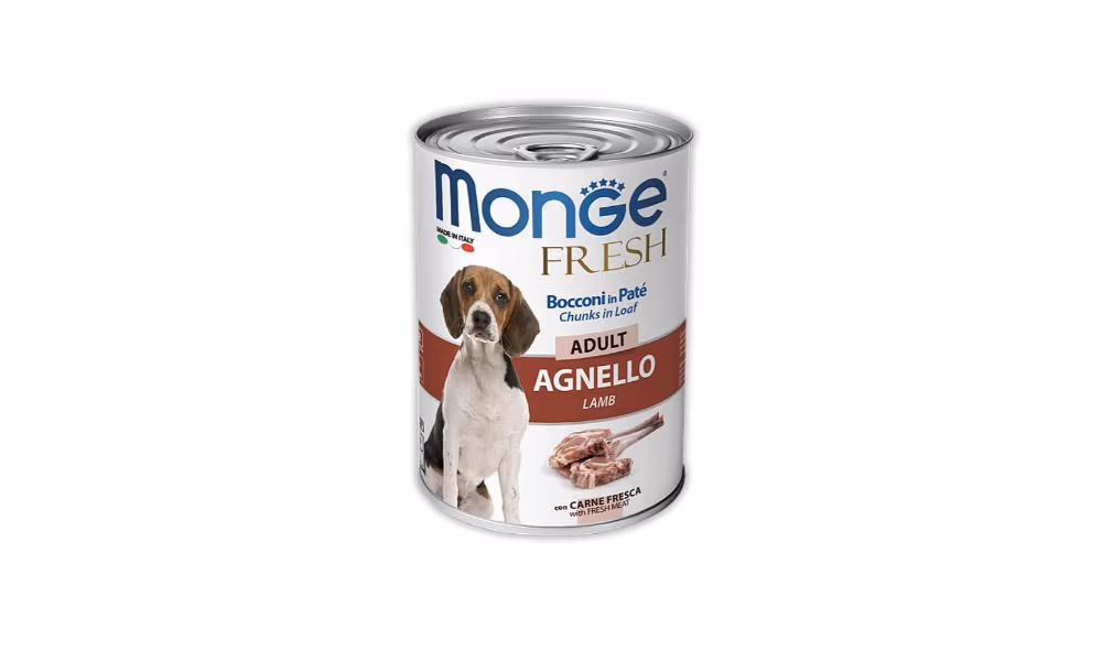 מונג` פרש שימורים מפנקים לכלבים בוגרים, סידרת השימורים FRESH עם מתכון ייחודי טעים ומזין במיוחד מבית ענקית המזון מונג' איטליה.